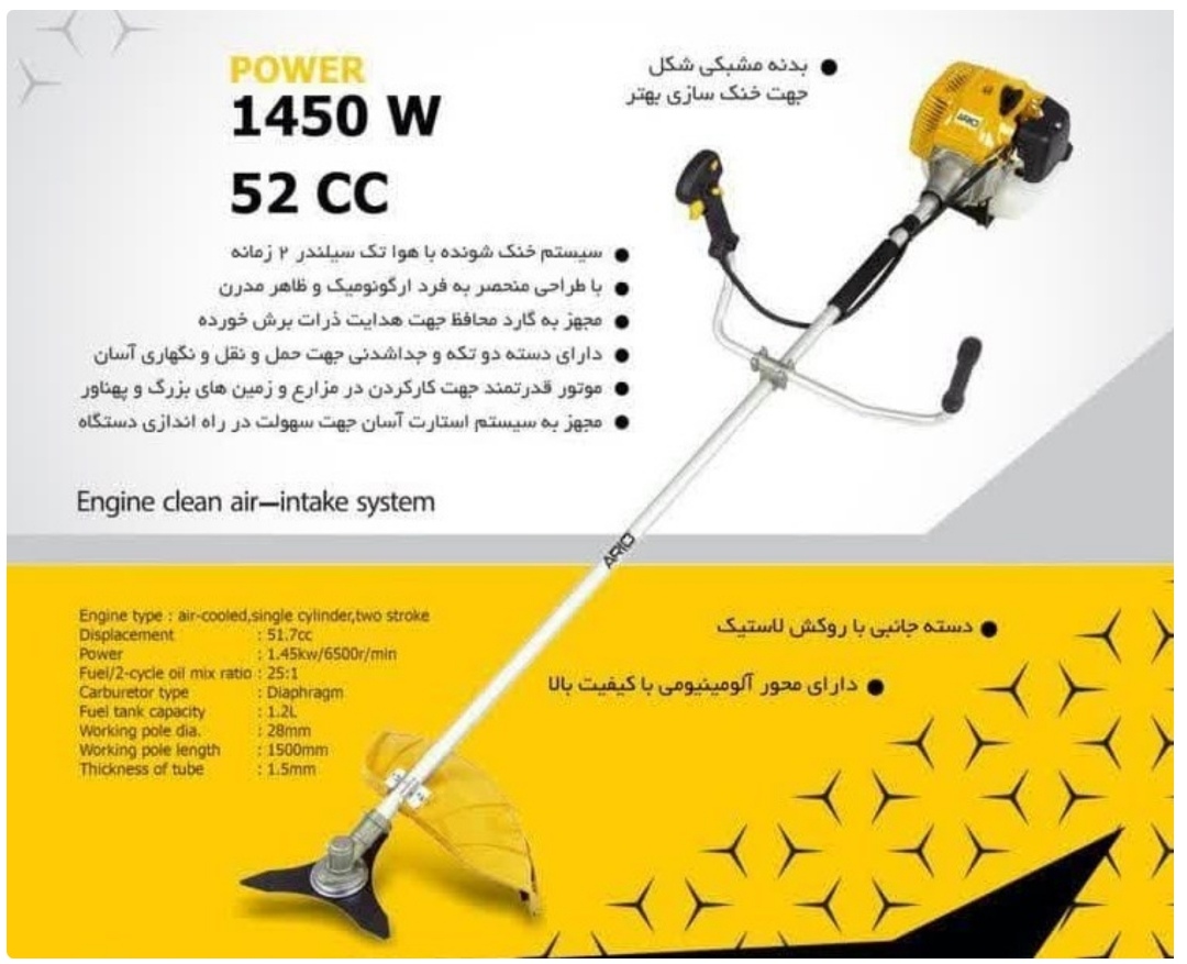علف زن دوشی 52 سی سی آریو مدل 1450w